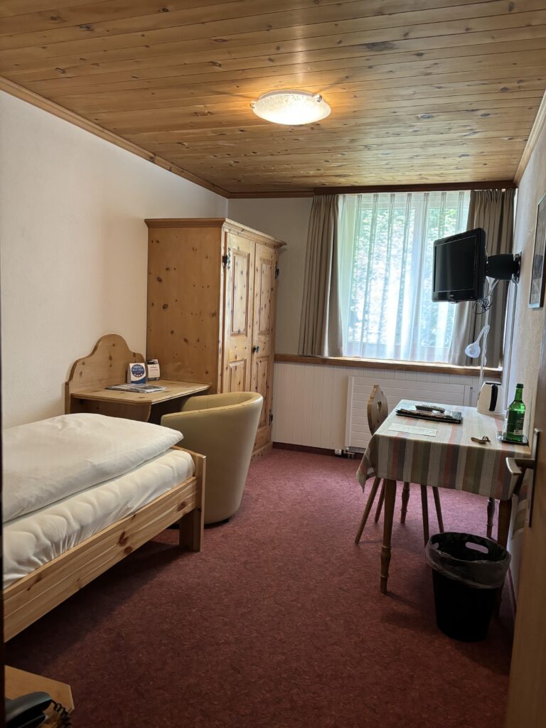 サンモリッツからバスで20分。シルヴァプラーナ湖近くにあるSils imにあります。1泊しかしないならサンモリッツ駅近くで泊まればよかったのですが、シルバプラーナ湖畔の風景に私の心を撃ち抜かれまして宿泊決定。正直、ここで数泊したかった。さらに言えば、もう一度この風景を見に行きたいと恋焦がれる日々を送っている。